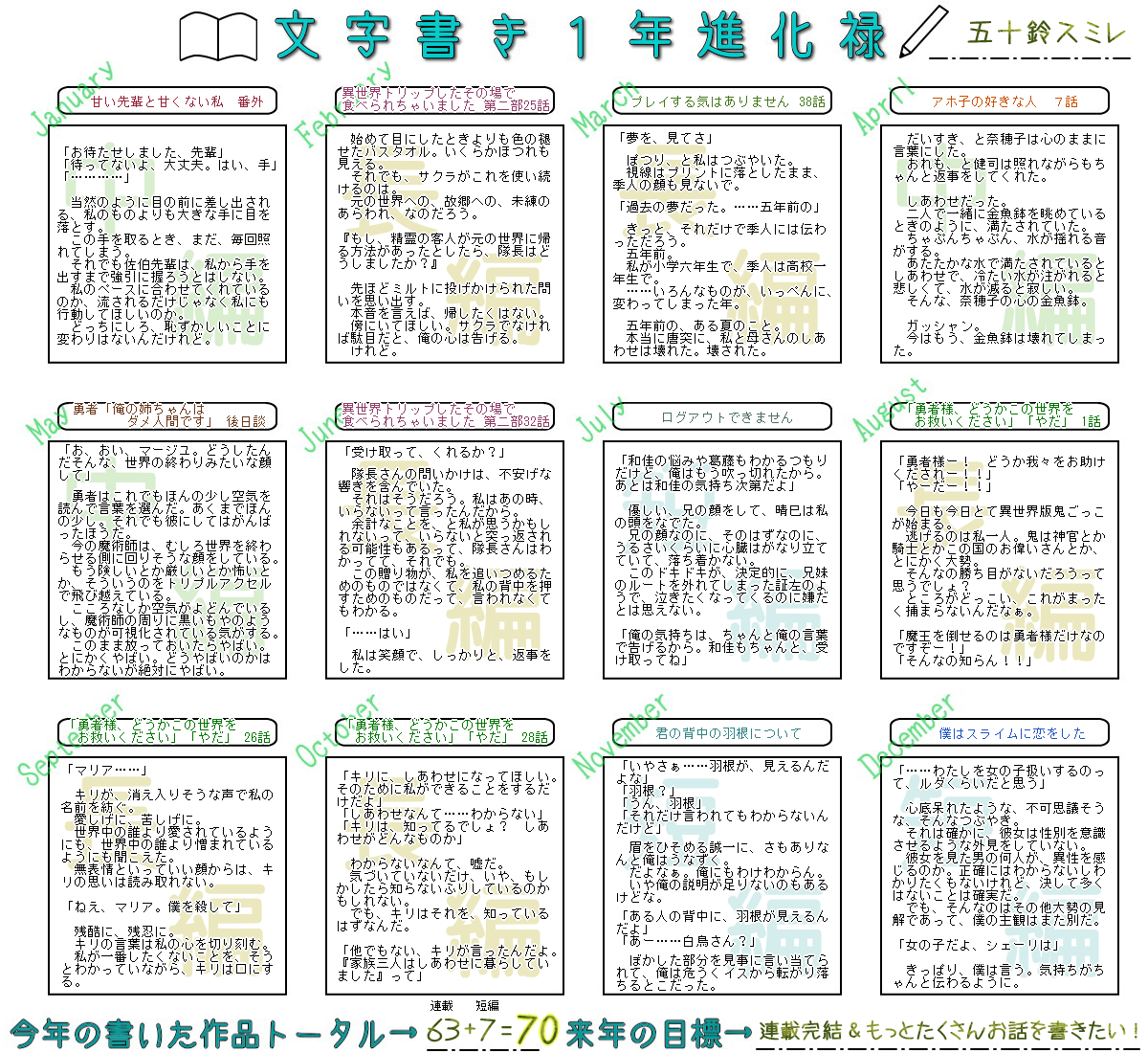 とりあえず取り急ぎ、文字書き一年進化録だけ置いておきます(*^・ェ・)ノ